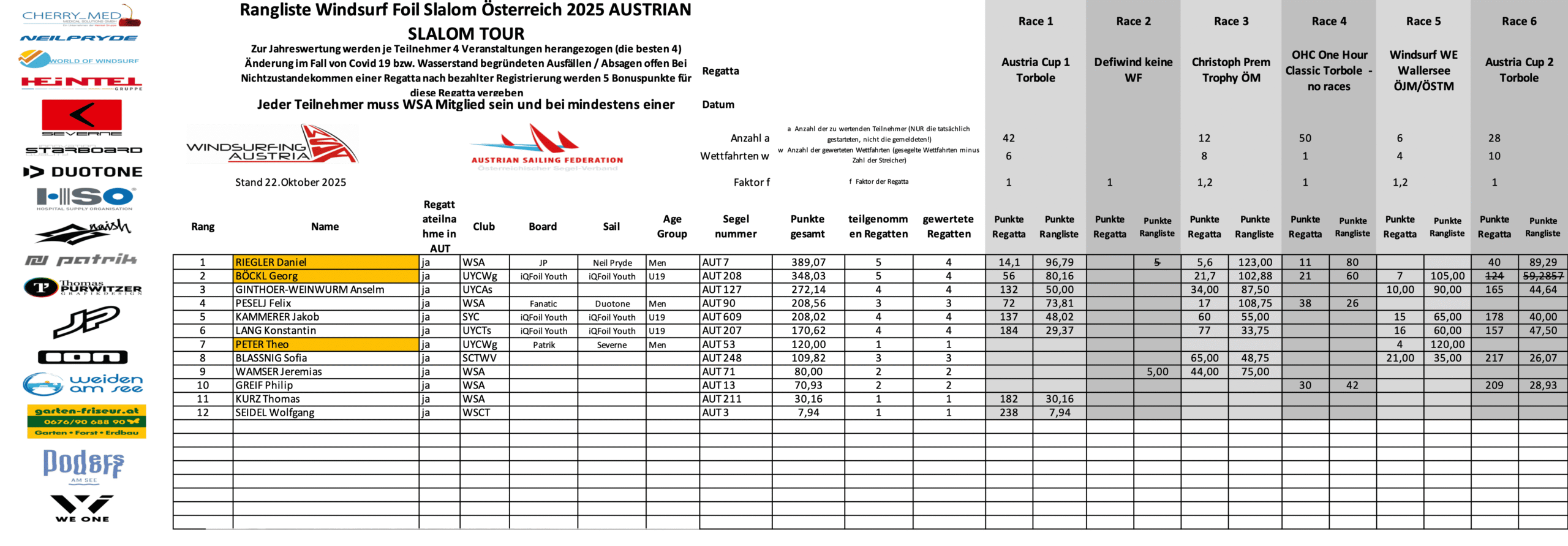 • Mindestens eine Regatta in AUT registriert